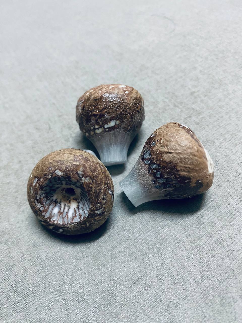Buah pinang yang dikeringkan dan diukir menjadi perhiasan untuk kegunaan peribadi.
