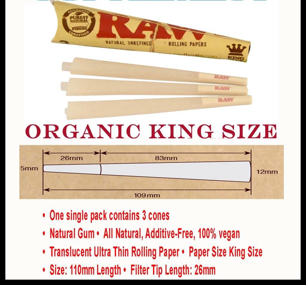 RAW ORGANIC KINGSIZE PRE ROLLED CONE 3PC PER BOX
